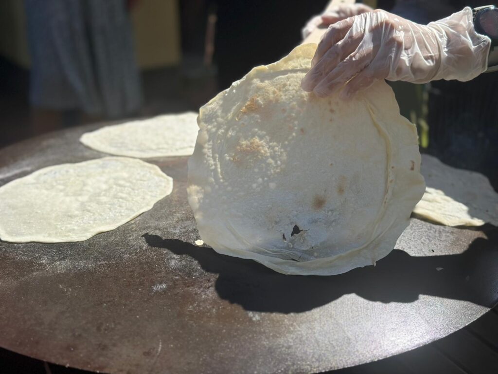 Das Probieren, Kochen und Erleben einer neuen kulinarischen Welt machte allen viel Freude. Auf dem traditionellen Saj bereiteten wir köstliche Fatayer zu, und auch die Herstellung der würzigen Muhammara-Paste konnten die Gäste Schritt für Schritt kennenlernen.